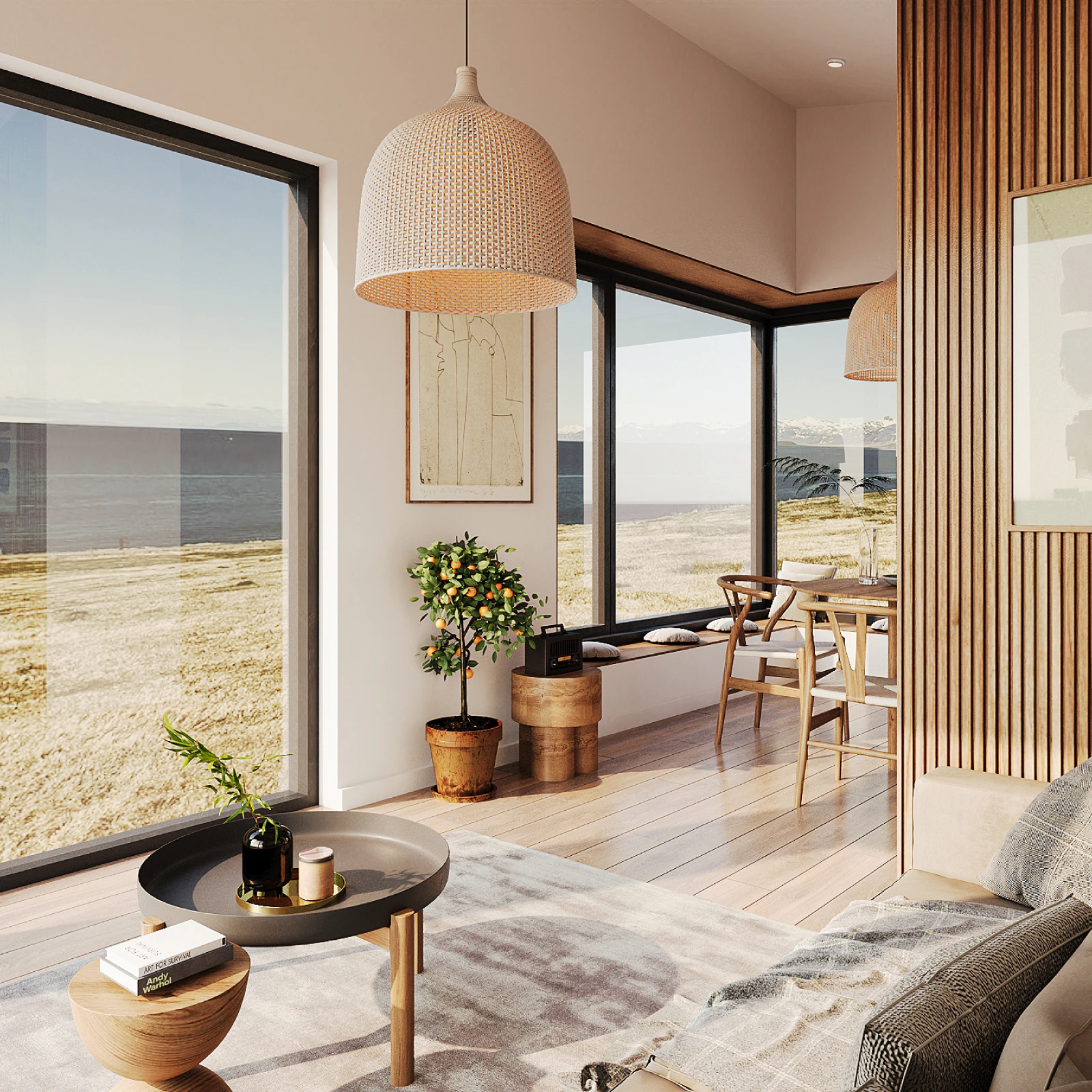 Perched on a high point, this suite offers breathtaking panoramic views of both the ocean and mountains. It lets you take the view from every angle, while the interior’s open design invites relaxation with a modern kitchen and a comfortable living area.